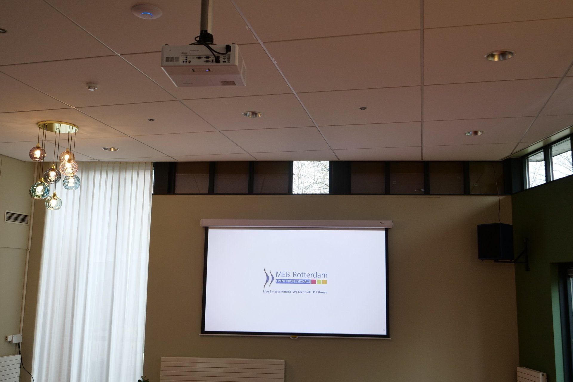 MEB AV supplies various beamers / projectors. For temporary projections we use tension screens. Combined with scalers/switchers and other peripheral equipment we provide sharp, image-filling presentations and we can switch seamlessly between different presentations, (corporate/promotional) films, logos or for example live-camera images. Working with a combination of different resolutions is no problem. If desired, the projections can also be hidden from view with see-through screens. If there is little space for the projector we work with ultra short throw lenses and mirror constructions.